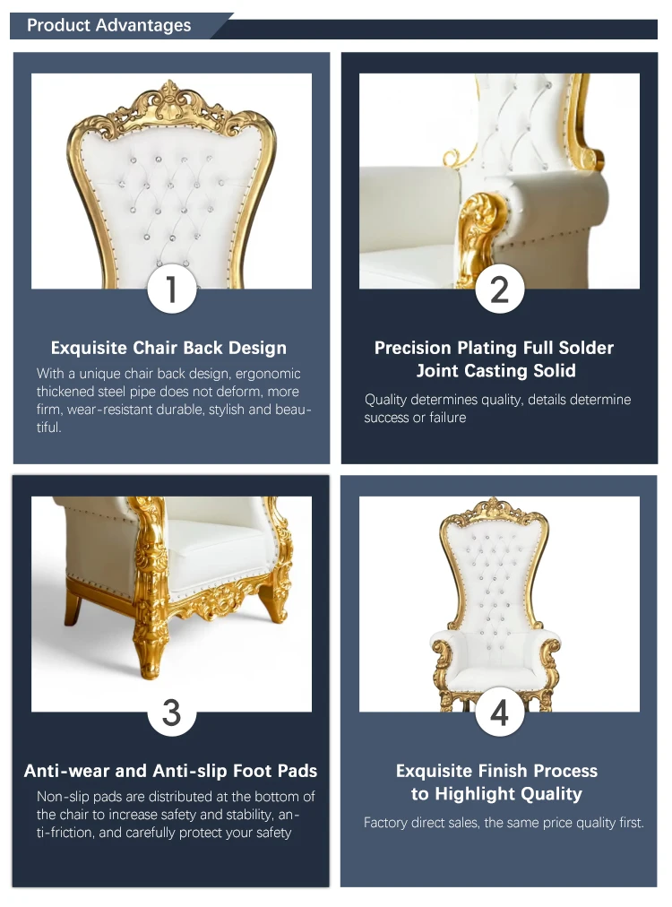 豪华金色黑色白色红色皇家国王女王公主王座椅子户外耐用环保商用婚礼餐饮