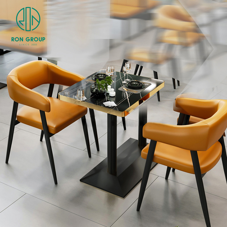 Luxury Hotel Chinese Custom Square Coffee Shop Marble Commercial Coffee Shop Restaurant Furniture Stall Seating Table and Chair Set