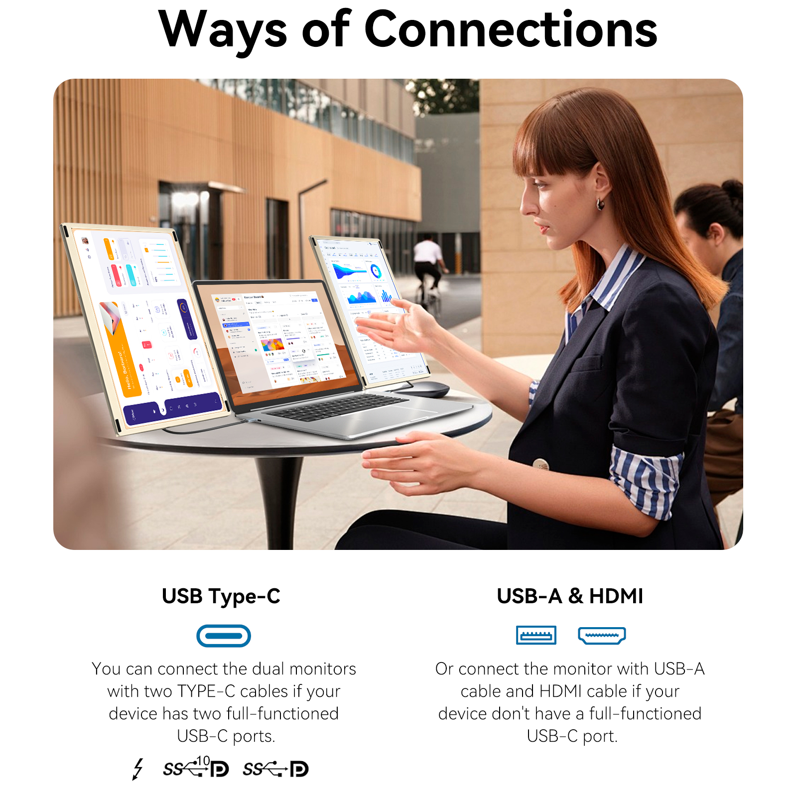 OEM S6 portable monitor with dual IPS full HD 1080 portable monitor screen, equipped with 120% sRGB portable triple monitor, suitable for laptops