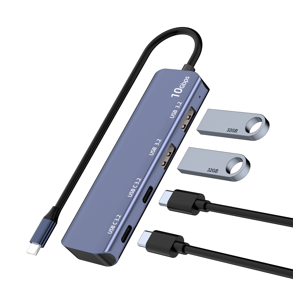 High quality USB 3.2 Gen 2 hub with 2 USB-A ports and 2 USB-C ports, suitable for laptops, desktops Mac