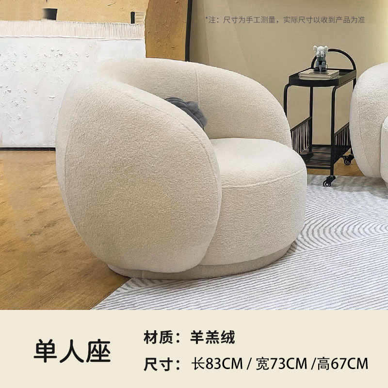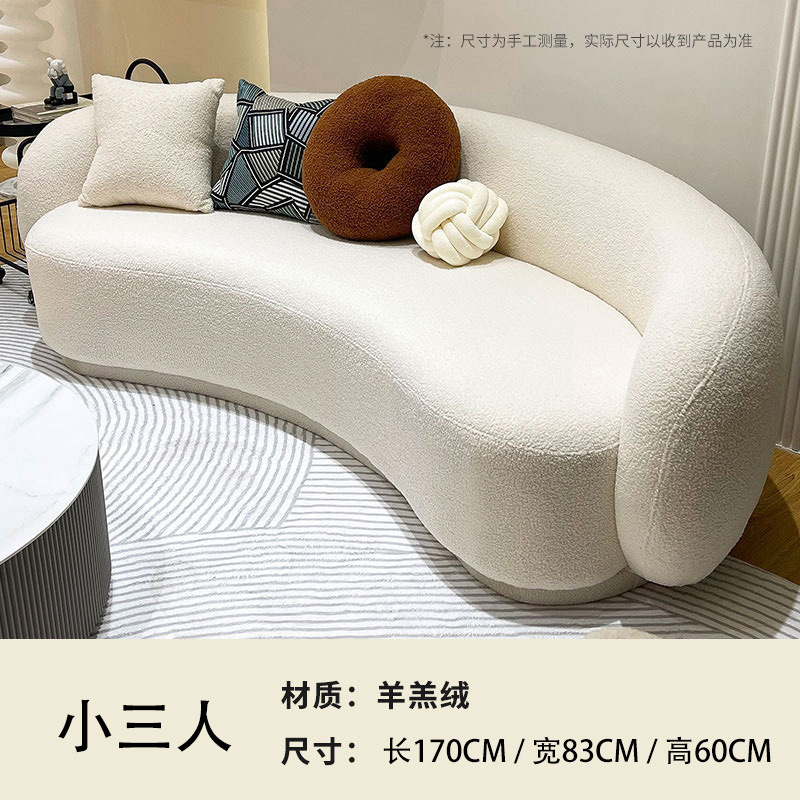 Scandinavian combination sofa cashmere fabric. Cream. Accessible curved rest area, lounge sofa