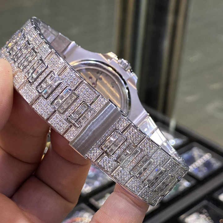 Newly customized ice crystal diamond watch 18K gold luxury designer brand automatic mechanical moissanite watch
