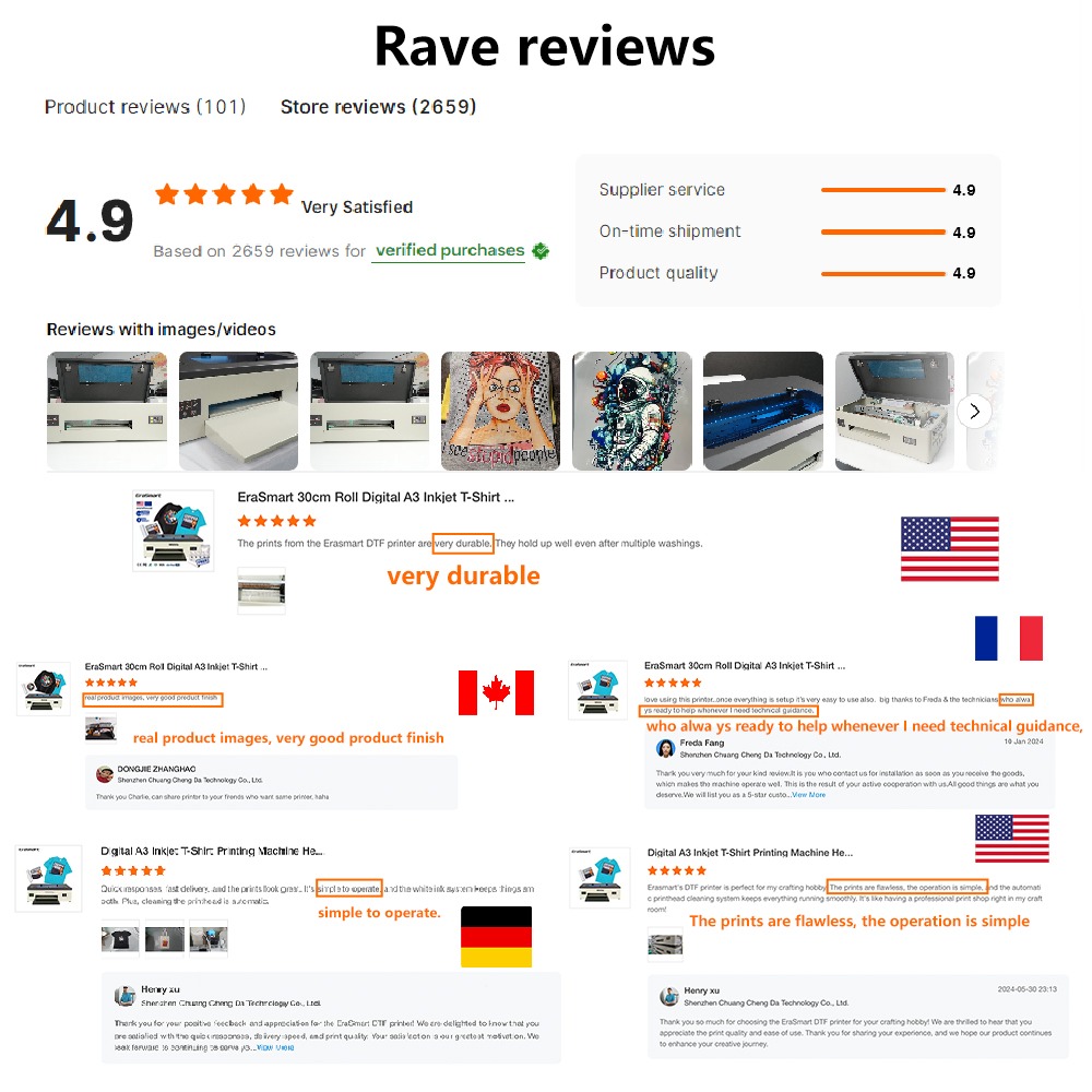 Free delivery EraSmart digital A3 polyester film t-shirt printing textile machine Dtf printing 30cm width Dtf printer with Xp600 head