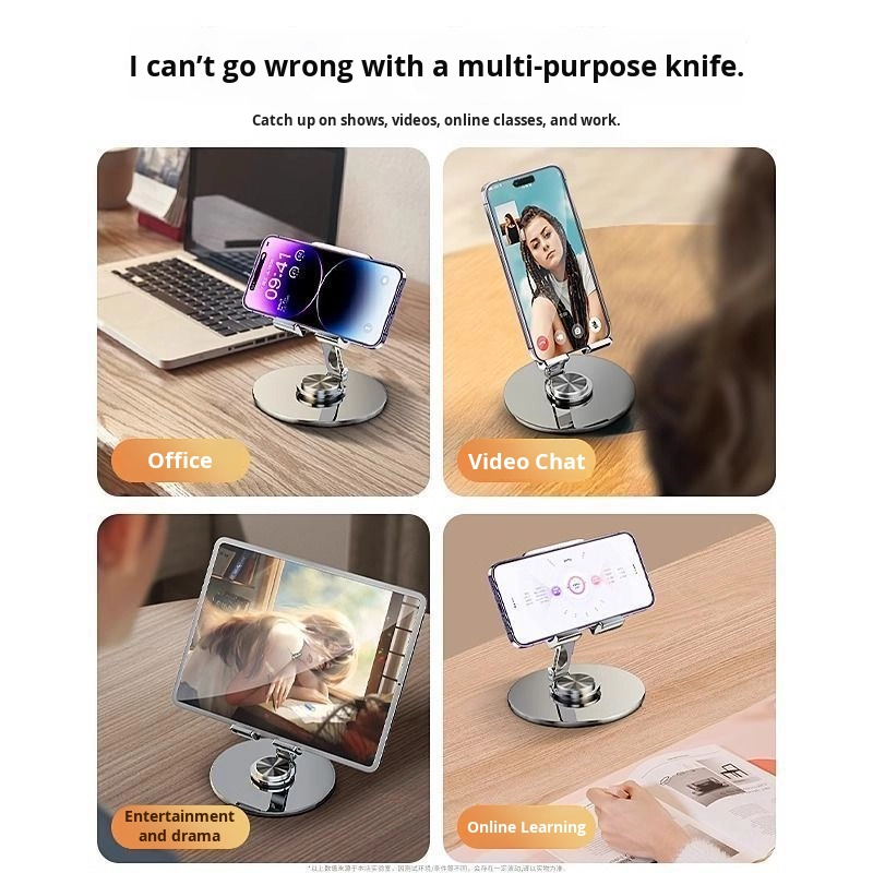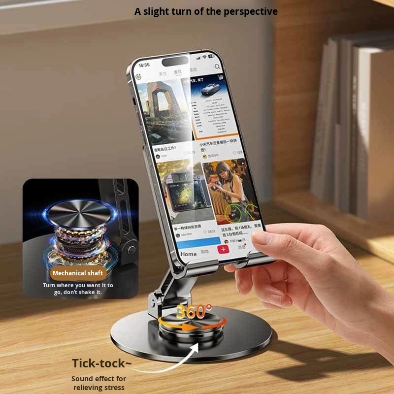 360 degree rotating all metal phone holder, foldable video shock resistant desktop live streaming, lazy cooling alloy instrument panel bed