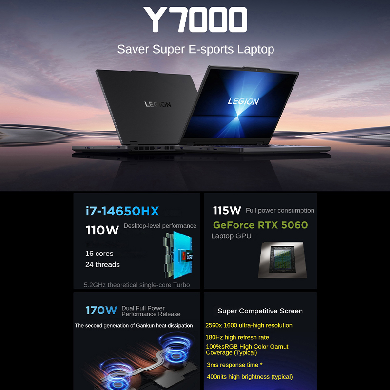 Lenovo Legion Y7000 2025 Gaming and Esports Laptop I7-14650HX 16/24GB 512GB RTX5060 15.3-inch PS Design Office and Gaming Laptop