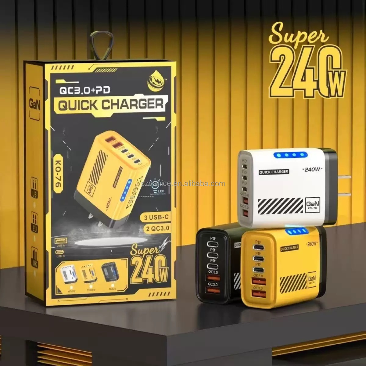5-port 240W USB-C wall charger for fast charging 3.0 240W Type-C USB C mobile phone charger for fast charging travel adapter