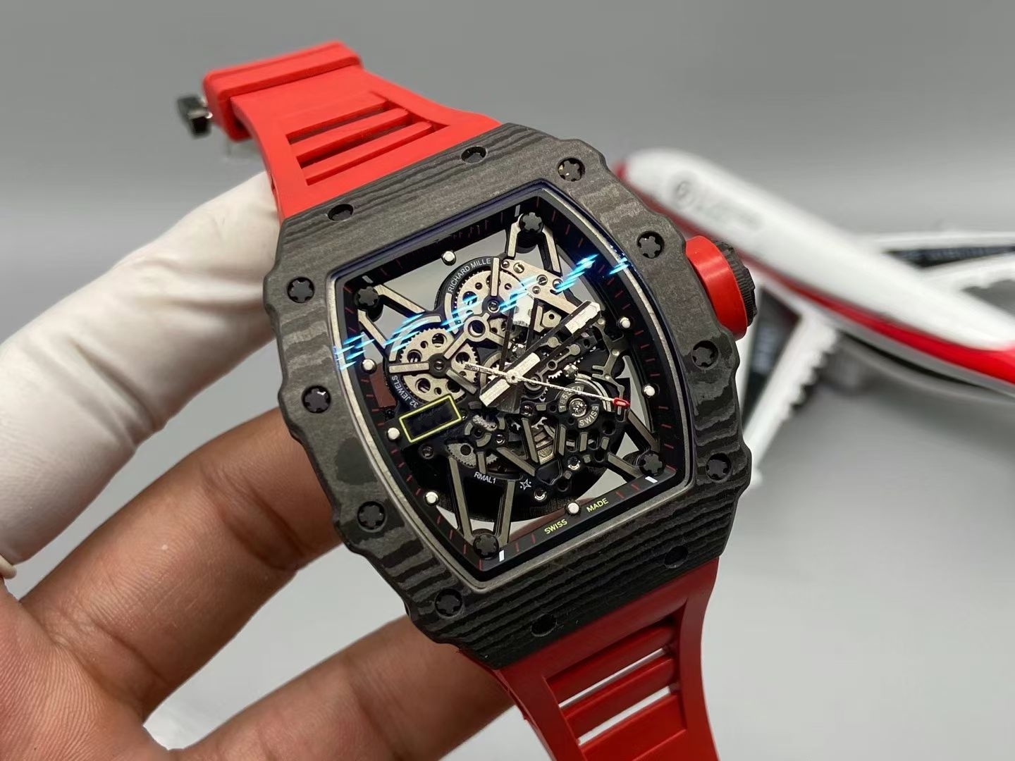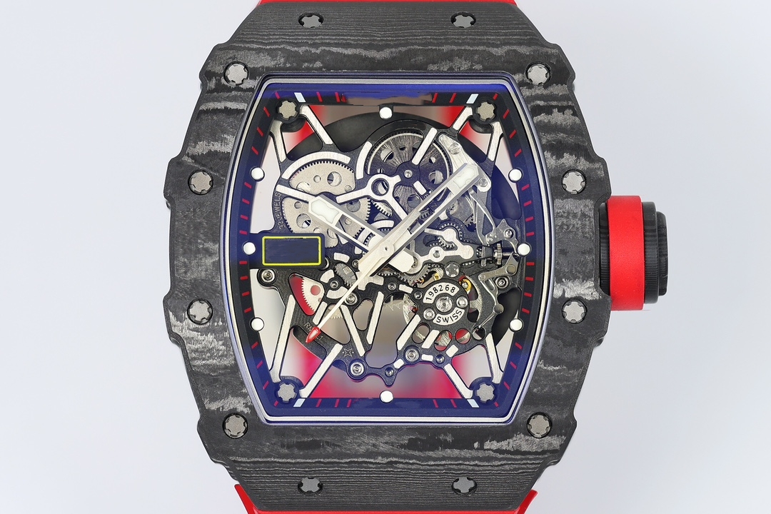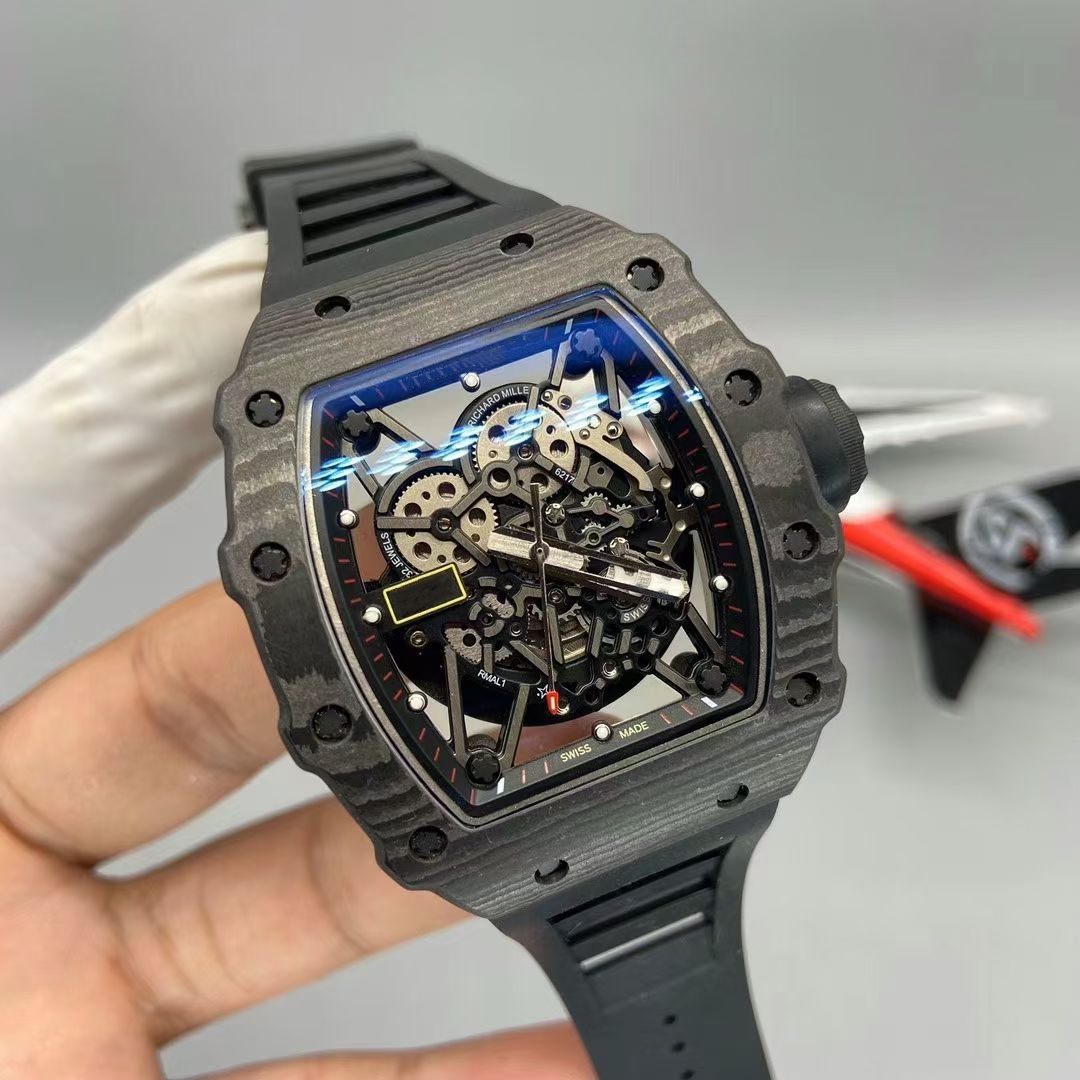 RMLICHA Men's Luxury Carbon Fiber Rubber Strap Automatic Mechanical Watch 44mm 10 Bar Waterproof Sapphire Crystal Dial
