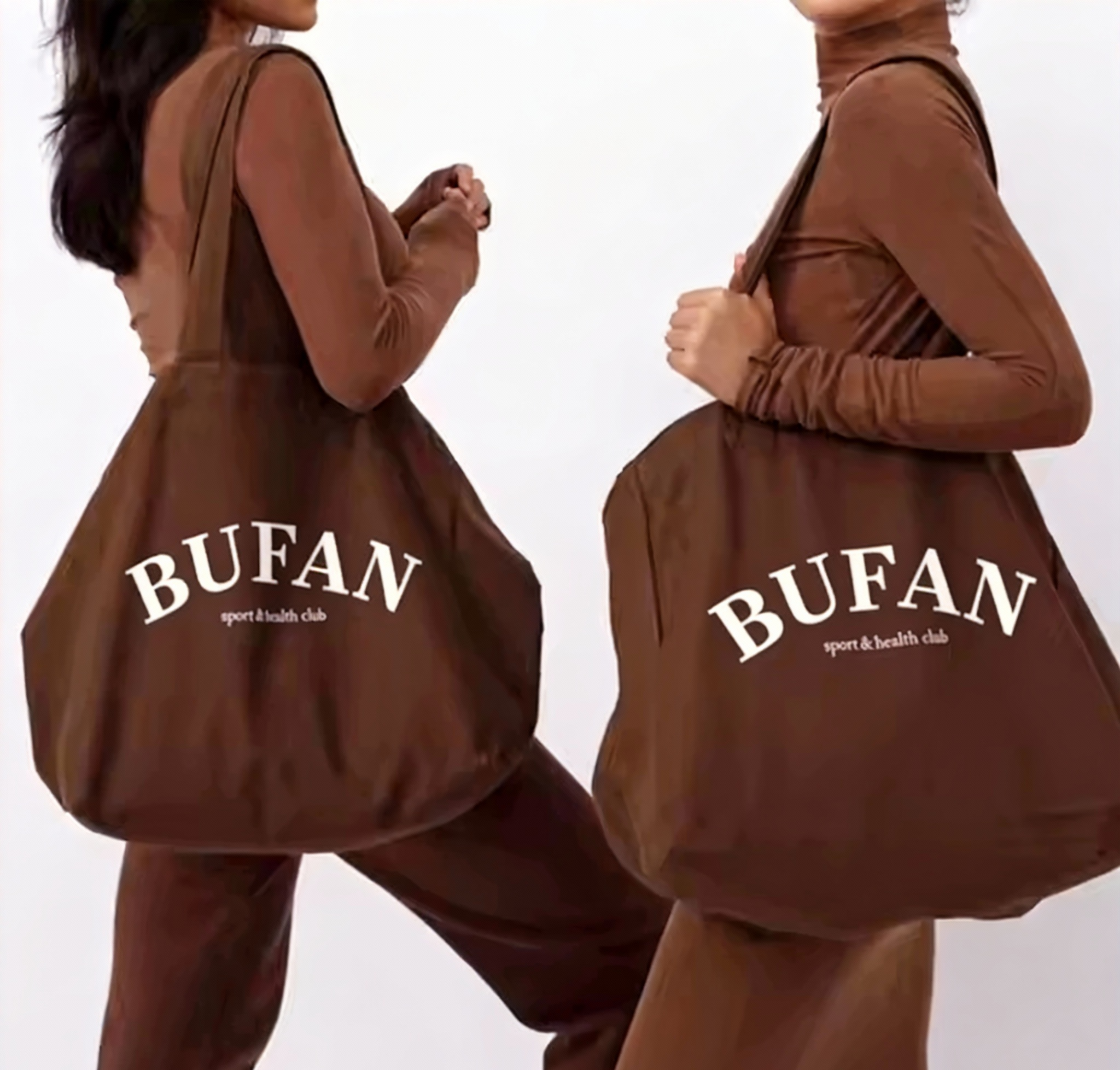 BFYS Brown Large Cotton Canvas Handbag with Letter Pattern Rope Handle Reusable Durable Grocery Shopping Yoga Sports Gift Bag