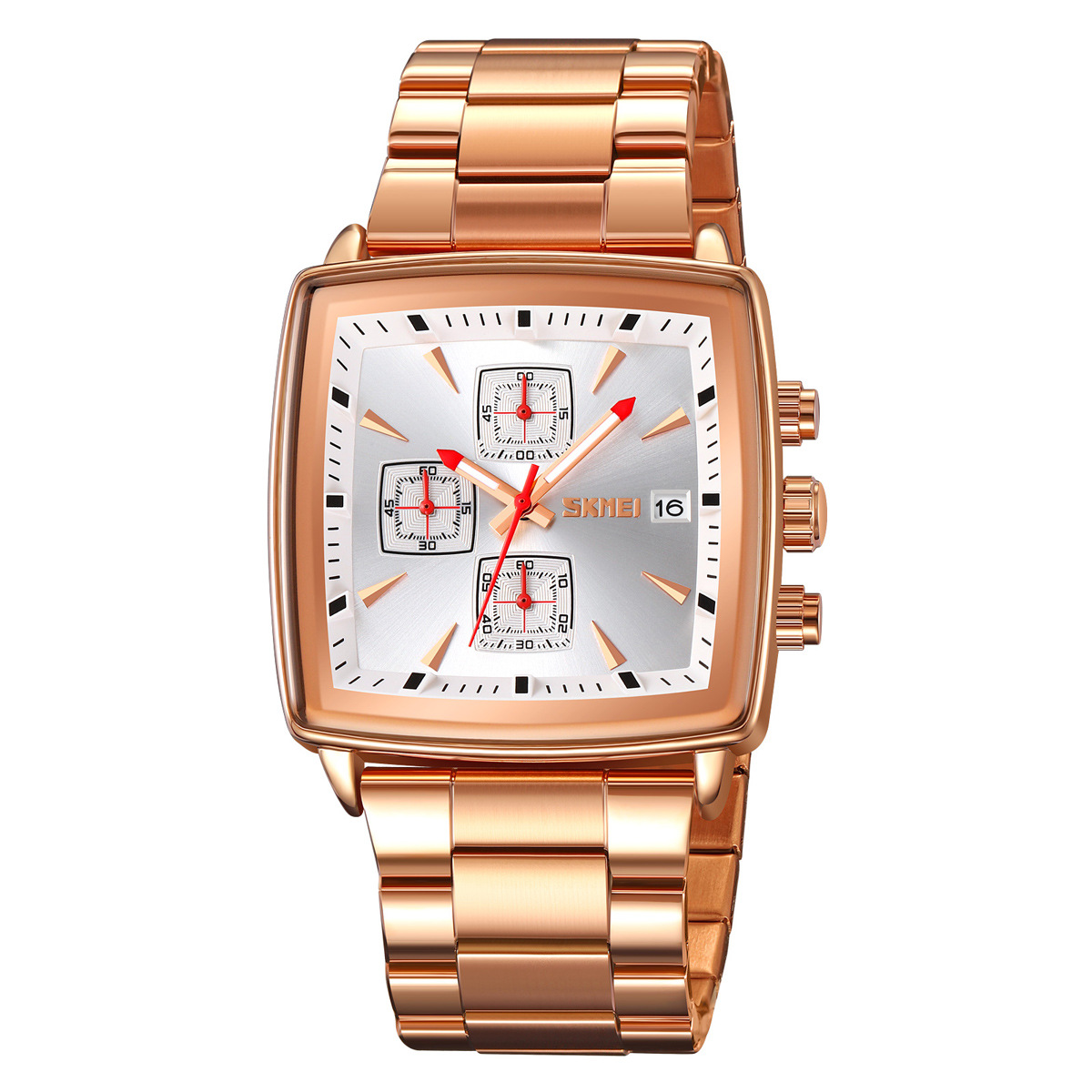Hot selling chronograph silver luxury 30 meter waterproof date stainless steel irregular men's watch 2026