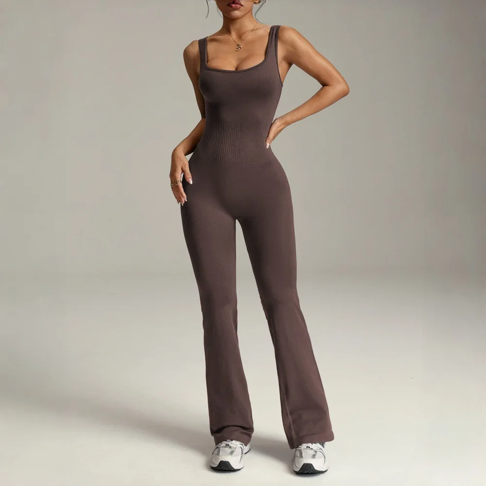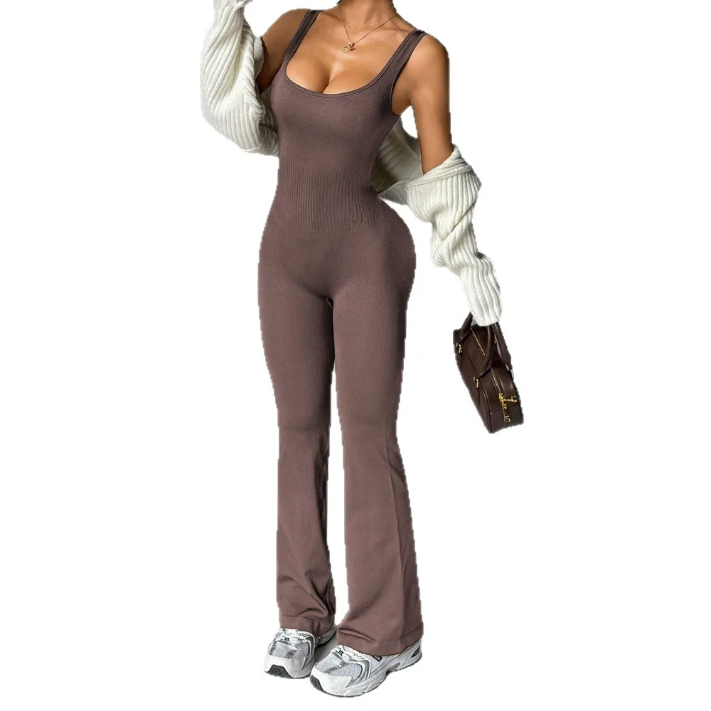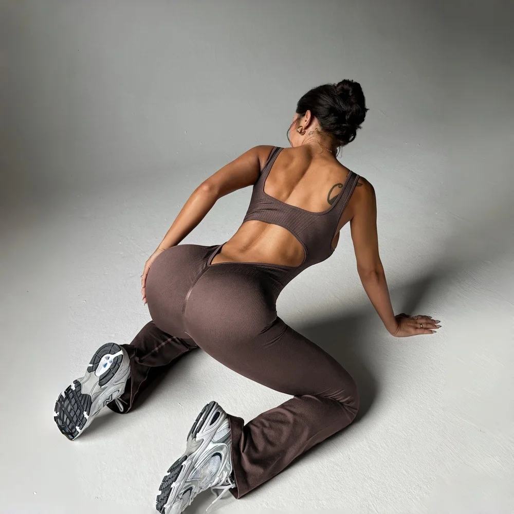 Women's quick drying spandex/nylon full-length tight fitting one-piece yoga suit, hip lifting exercise and fitness wide leg bell bottom pants