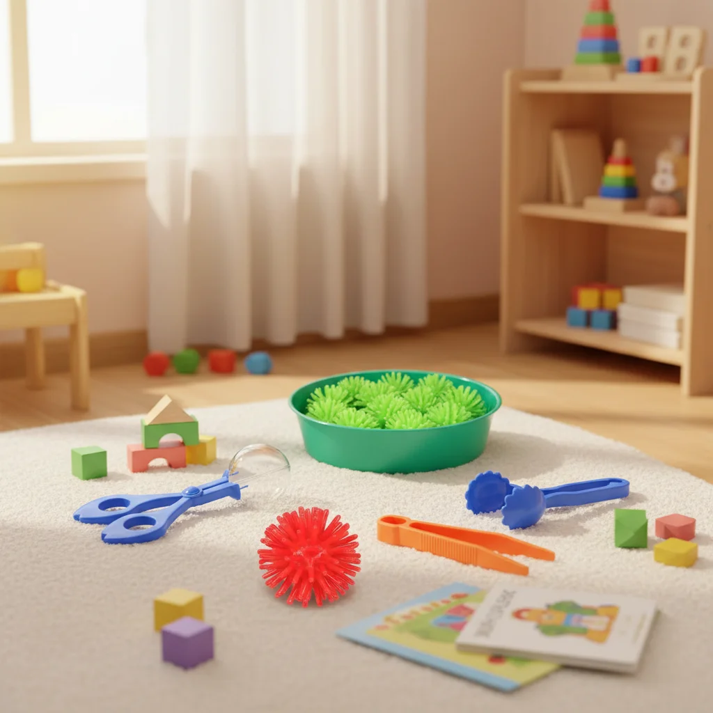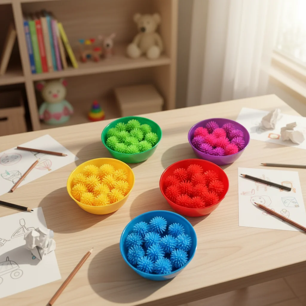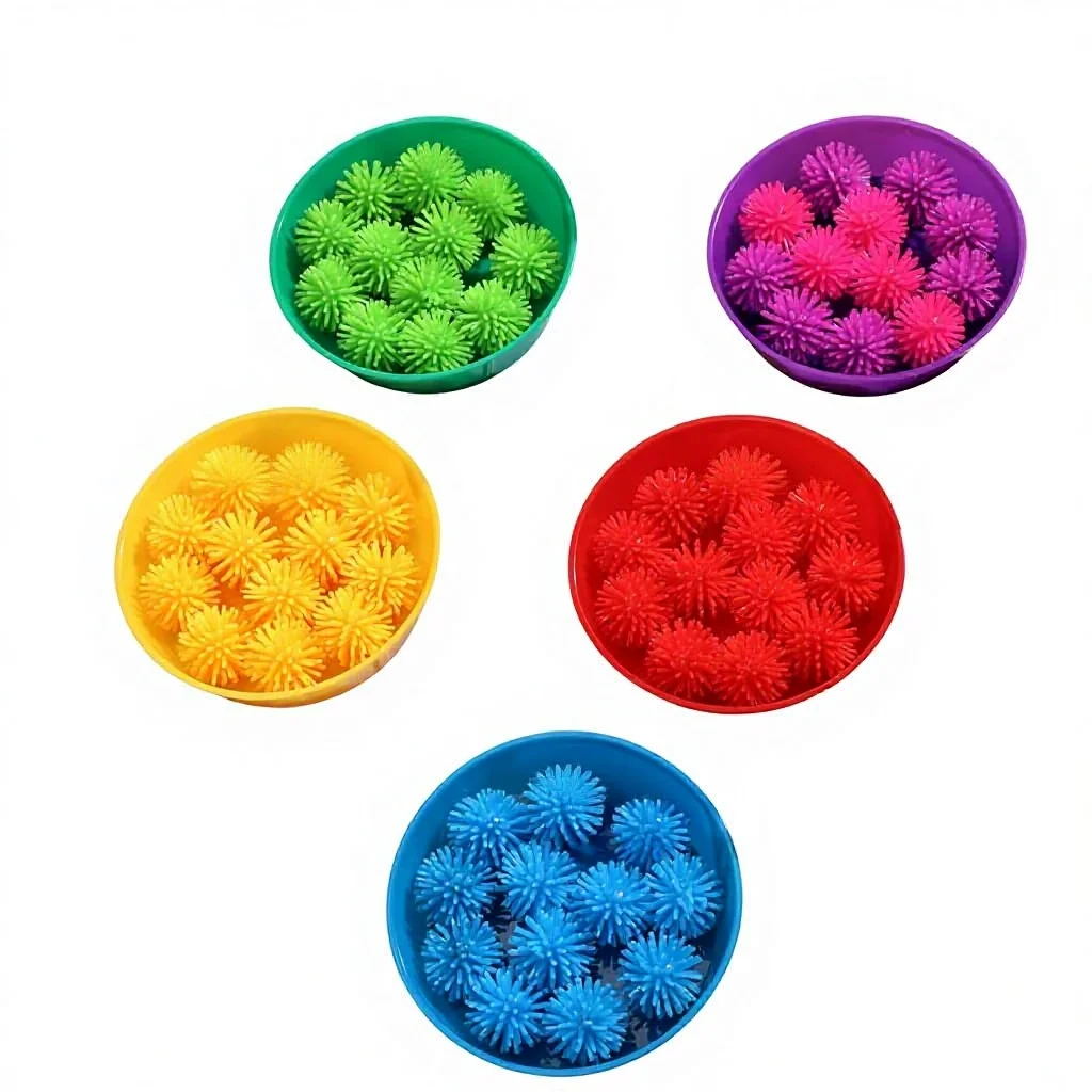 71 piece plastic sensory toy filling set, including 60 spheres, 4 tweezers, 2 scissors, 5 cups, for fine motor education