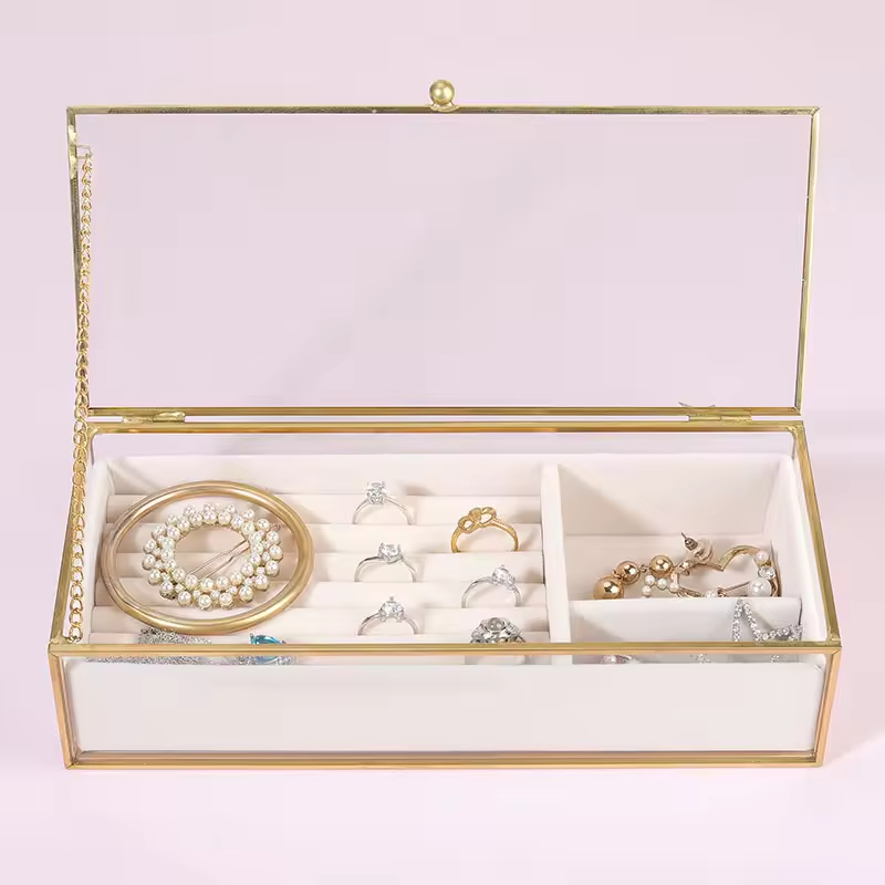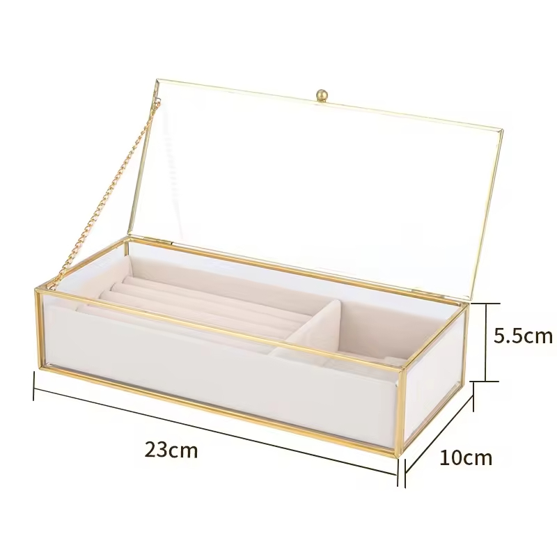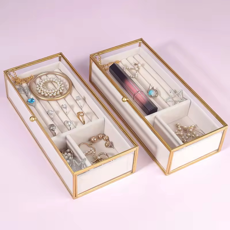 Simple and elegant large capacity rectangular glass transparent lipstick jewelry storage box, suitable for dressing table display