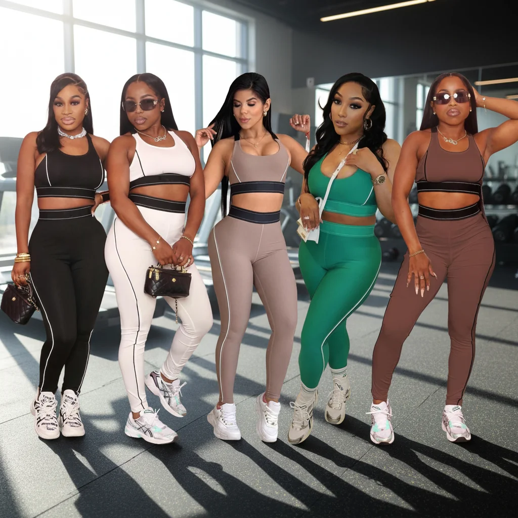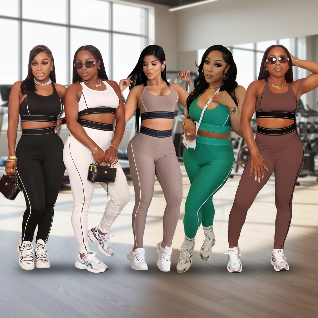 Q6274 Breathable High Support Sleeveless Push Up Exercise Tank Top, High Waist, Hip Lifting, and Abdominal Control Fitness Set, High Quality