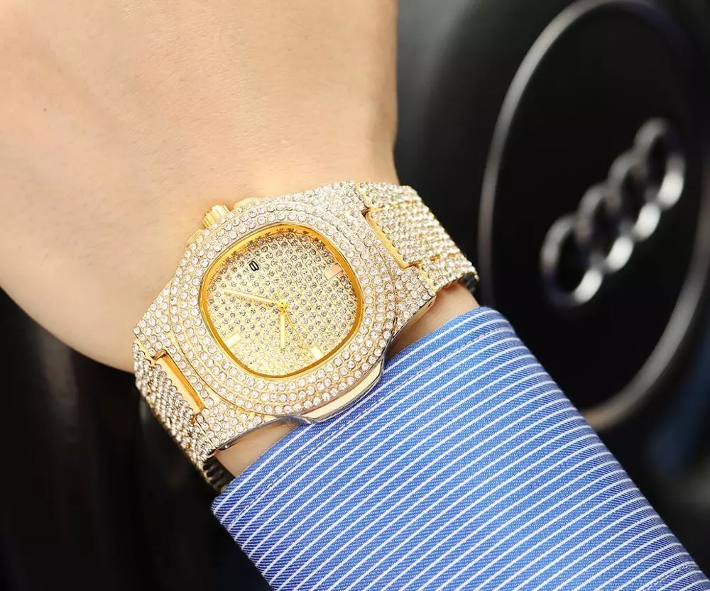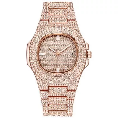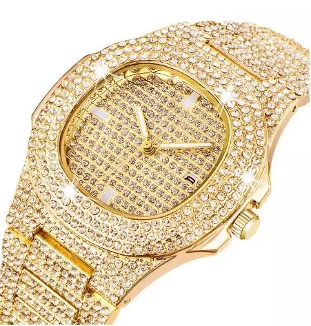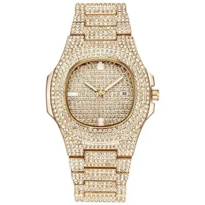 OEM ODM Top Brand Luxury Bling Quartz Square Men Watch Relojes Hip Hop Gold Full Diamond Iced Out Watch